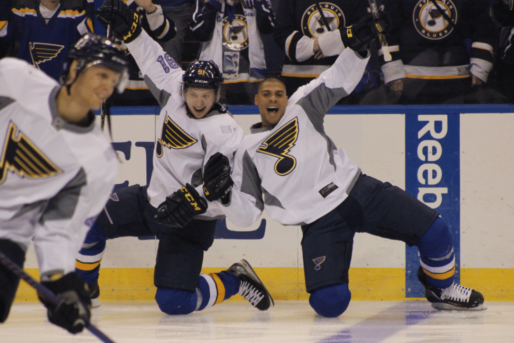 Tarasenko i Reaves mieli także swoje wspólne przedmeczowe rytuały, na które czekali fani zgromadzeni w Scottrade Center. Kiedy Reaves rozciągał się przy niebieskiej linii, Tarasenko podjeżdżał do niego i zderzali się razem ramionami. Była także masa specjalnych uścisków dłoni w szatni i poza nią…