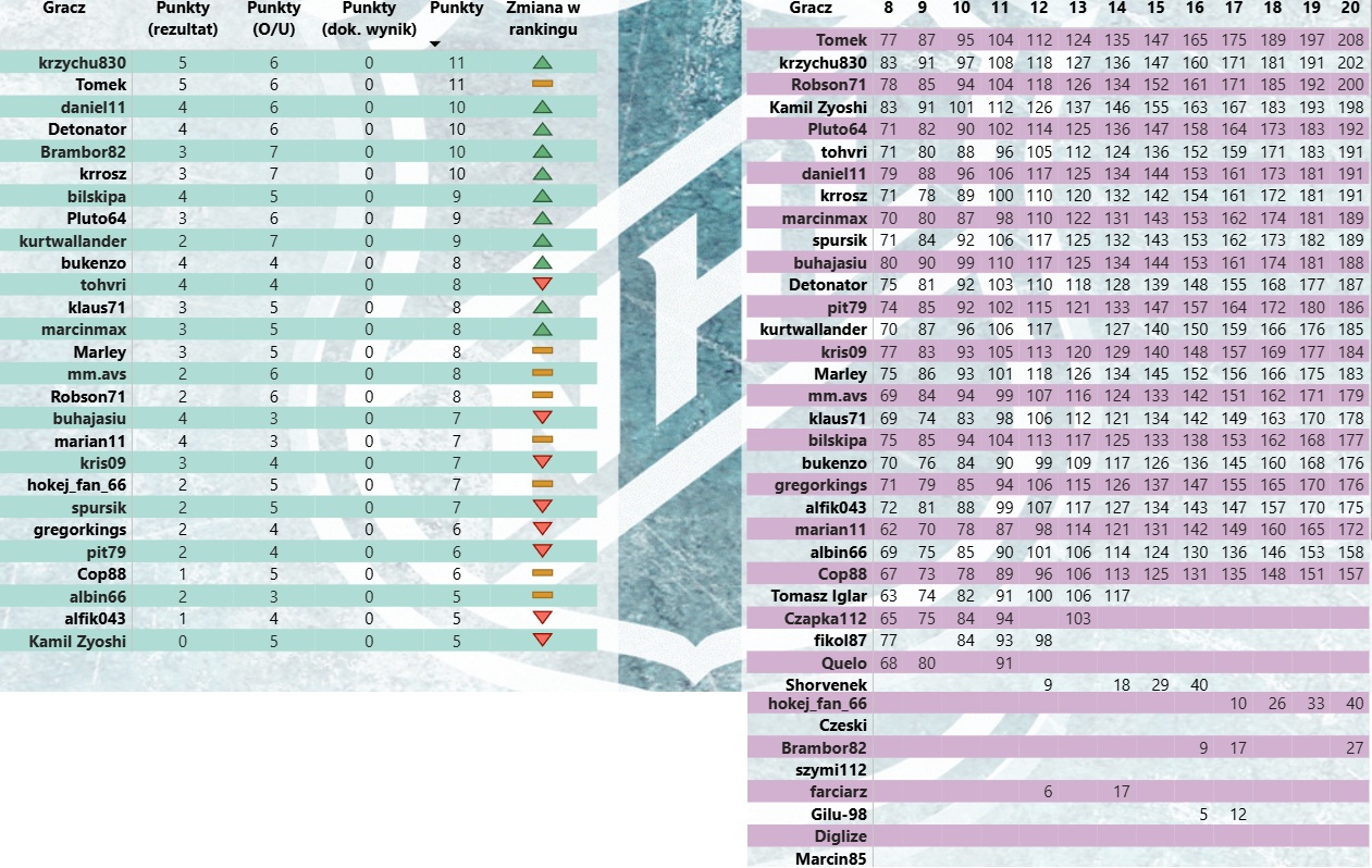 Typy muszą być podane przed rozpoczęciem się danego spotkania, w innym razie nie zostaną wzięte pod uwagę. W ostatnim miesiącu rundy zasadniczej tj. marzec oraz w fazie play-off typy podane zostać muszą jednocześnie wszystkich spotkań w jednym komentarzu przed rozpoczęciem się pierwszego spotkania. Typy po czasie pierwszego spotkania nie zostaną uwzględnione mimo reszty spotkań jeszcze nie rozpoczętych.