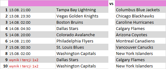 - Tampa Bay Lightning – Columbus Blue Jackets