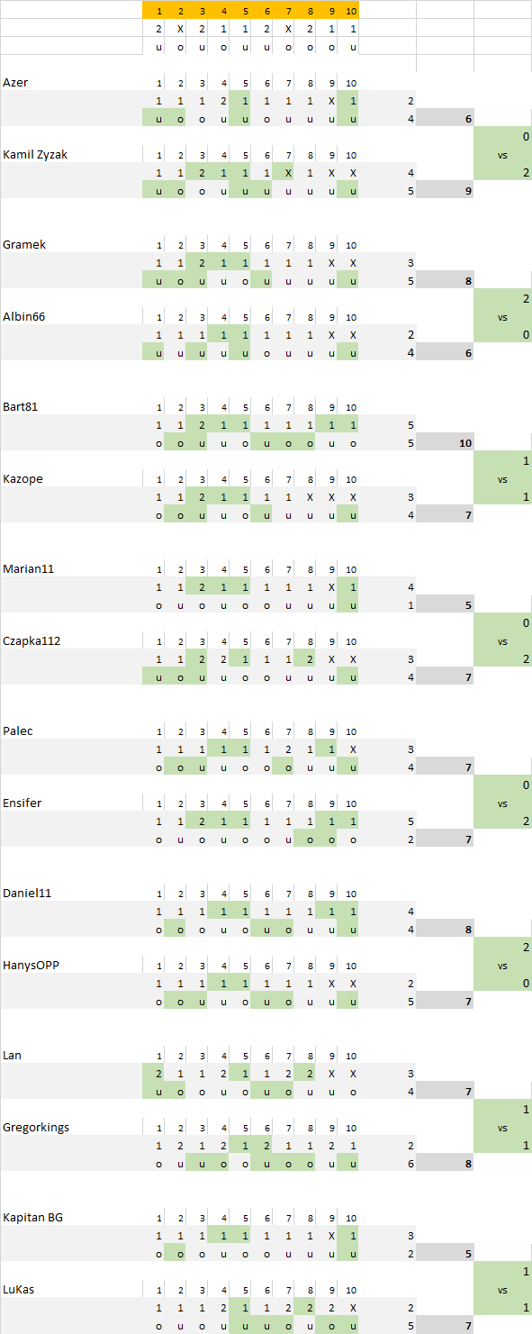 Rezultaty II spotkań 1/8