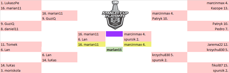TyperNHLwpl. Marian11 zwycięzcą play-off!Przez Kamil Zyoshi - 6 lipca 20216440tweet Marian11 zwycięzcą play-offRezultaty IV seriiGablota play-offSezon 2020/211 miejsce: Marian11 (200 zł)2 miejsce: marcinmax (100 zł)3 miejsce: lan (50 zł)4 miejsce: spursik (50 zł)*celem realizacji nagród proszę o kontakt kz****@*****il.com