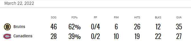 Wcześniej już Marchand trafił na 1-0, ale i Bruins mieli w tym meczu słabszy moment od połowy drugiej tercji do połowy trzeciej (mniej więcej). Wtedy stracili kontrolę nad spotkaniem i nawet przegrywali 1-2 po bramce w osłabieniu Joela Armii. Uwagę mocno zwraca liczba strat w tym meczu – czy obie drużyny myślami były za mocno na Trade Deadline i w temacie potencjalnych wymian? Być może, ale i tak nie powinno im się przytrafić łącznie aż 62 strat. To jeśli chodzi o jedną drużynę (35 giveawais Bostonu) wyrównanie rekordu sezonu należącego do tej pory do Coyotes…