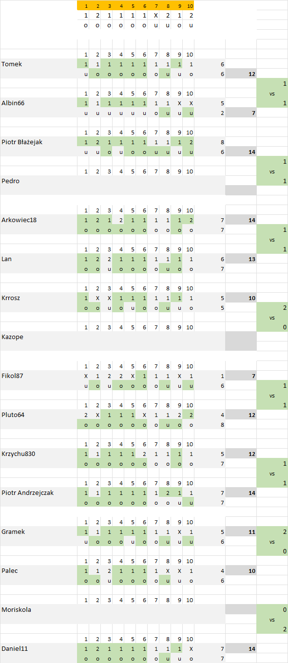 Zgodnie z punktem regulaminu swoje typy w fazie play-off wysyłamy na adres e.mail kz****@*****il.com – nie składamy typów w komentarzu jak miało to miejsce w fazie zasadniczej. W ten sposób unikamy skopiowania identycznych typów swojego rywala, zmieniając taktycznie jedno spotkanie – owe miejsca miały we wcześniejszych play-off w już praktycznie rozstrzygniętych spotkaniach.