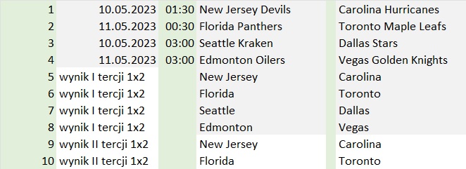 - wynik II: New Jersey – Carolina (over/under 2.5)