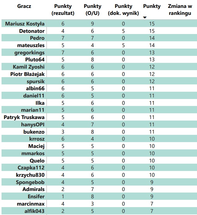 Pełne rezultaty poniżej m.in w link – wybierając odpowiednią kolejkę lub opcję all.