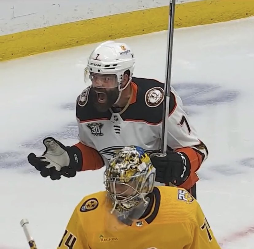 Pamiętacie słynna minę Radko Gudasa, gdy grał jeszcze dla Panthers i „wydarł” się na bramkarza Maple Leafs po kolejnym sukcesie Florydy nad nimi? Ekspresji czeskiemu obrońcy nie brakuje i dlatego jest częstym i wdzięcznym obiektem fotografów, tak było również we wczorajszym starciu Ducks z Predators. Kaczory w swoim stylu, odwróciły wynik meczu w trzeciej tercji. Po raz szósty, na 15 rozegranych meczów. Nie jesteśmy zdziwieni, bo pokazywali takie zdolności już w trakcie niedawnej zwycięskiej passy. Tutaj dużo znaczyła aktywna w ofensywie obrona – bo na liście strzelców znaleźli się i wspomniany Gudas , a także Cam Fowler.