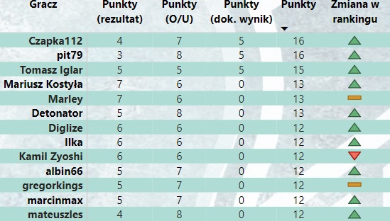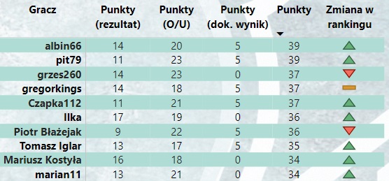 Trzecia pozycja w posiadaniu Tomasz Iglar, który extra pięć punktów łapie w Joker meczu