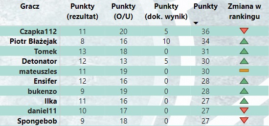 Pełne rezultaty poniżej m.in w link – wybierając odpowiednią kolejkę lub opcję all.