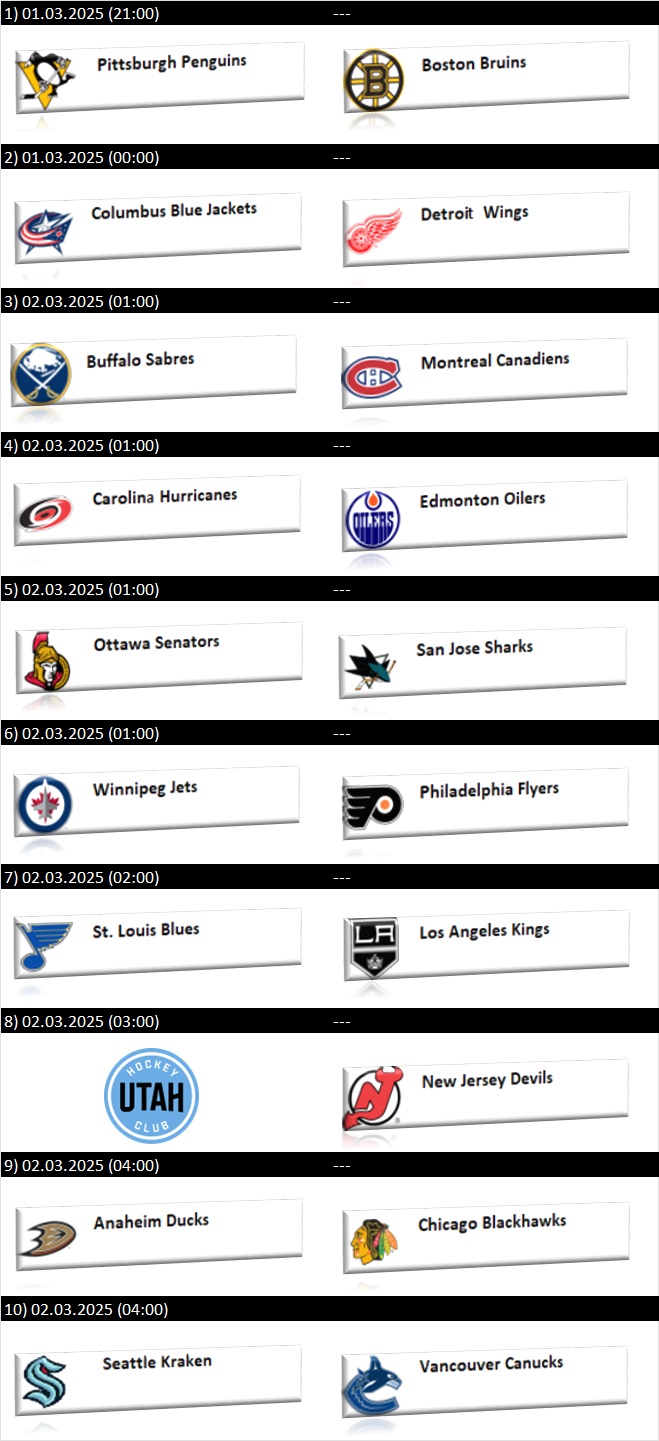 1/2 marca rozegrana zostanie 1 kolejka marca Ligi Typera NHL w PL
