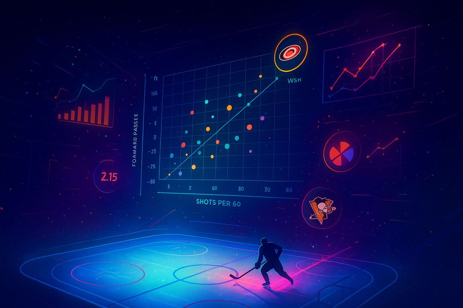 1. Oś pozioma: liczba strzałów na 60 minut gry