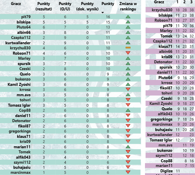 Rezultaty 2 kolejki października oraz dalsze zapisywane będą w Kąciku Typera.