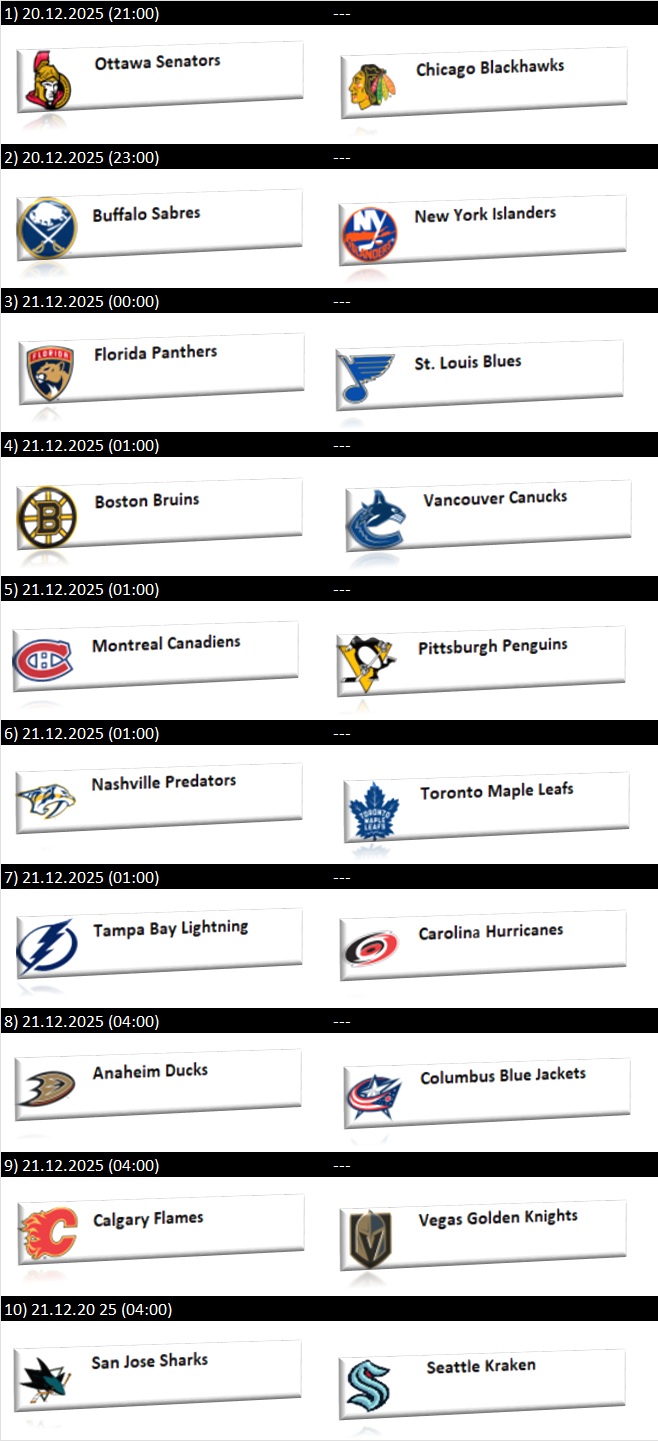 - Buffalo Sabres – New York Islanders