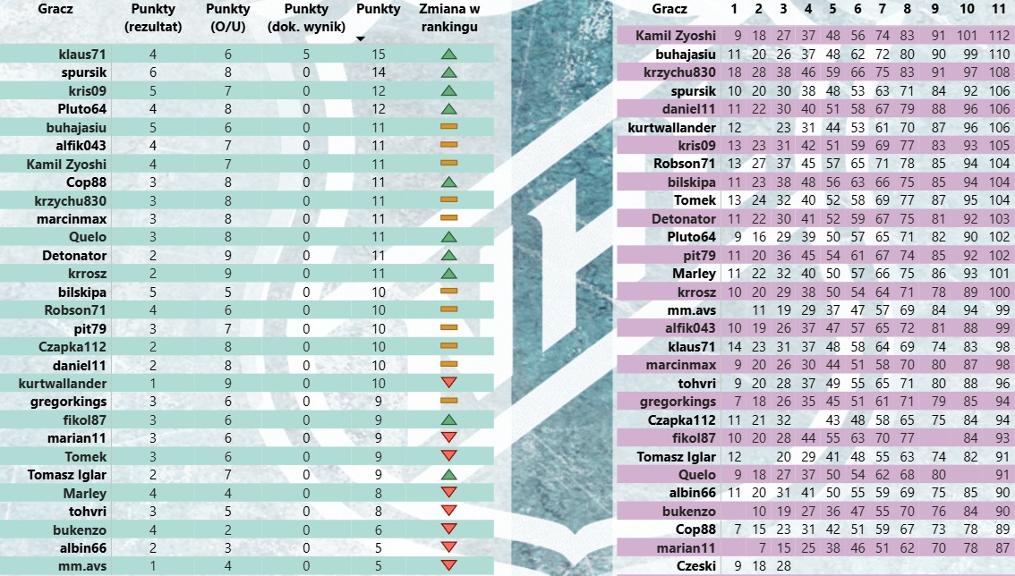 Klaus71 wygrywa 3 kolejkę grudnia przed świętami. Dodatkowy trafiony Joker w meczu Anaheim Ducks 4:3 Columbus Blue Jackets pozwolił znaleźć się na podium przed Spursikiem.