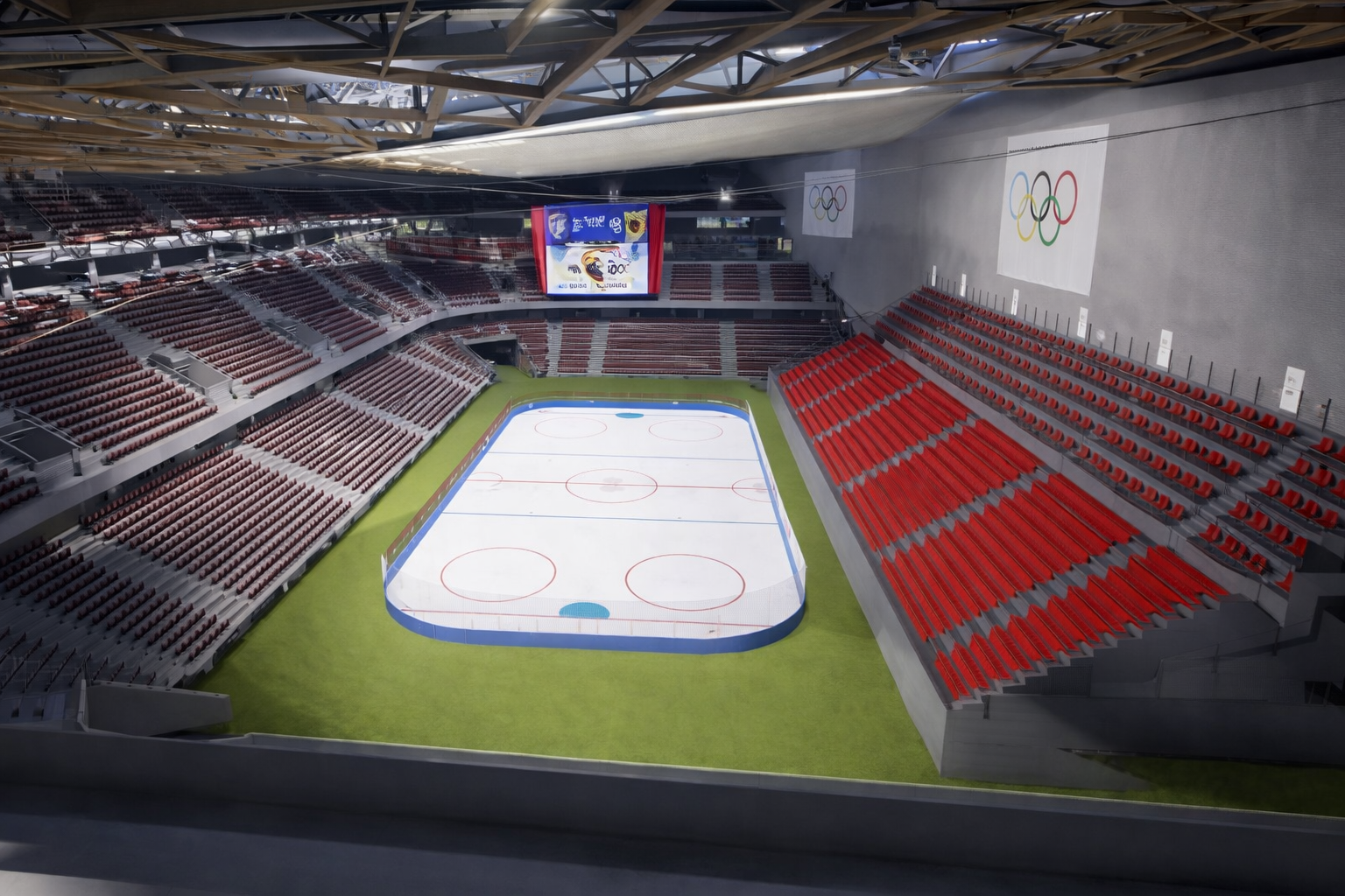 Plan jest następujący: stadion zostaje podzielony przepierzeniem na dwa odrębne lodowiska. Każde z nich ma pomieścić od 16 000 do 17 000 widzów, co razem daje około 30 000 miejsc siedzących. Na boisku piłkarskim staną dwie tafle lodu ustawione obok siebie wszerz, bo wzdłuż boiska po prostu nie ma jak ich upchnąć. Nad całością zaplanowano tymczasowy dach.