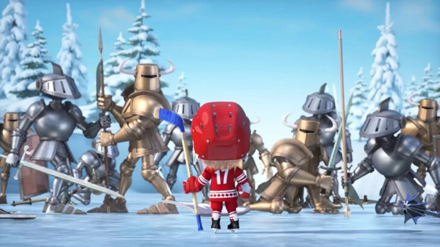 Hokejowi poświęcono tylko jeden odcinek, choć jego atrybuty pojawiały się już wcześniej. Na przykład w szachowym epizodzie „Ruch koniem” Masza i Zając bawią się krążkiem i kijami. Widnieją na nich napisy „Mistrz 1242” i „Mistrz 1380” – to czytelne nawiązania do bitwy na jeziorze Pejpus (tzw. Lodowe Pobojowisko) oraz bitwy na Kulikowym Polu.