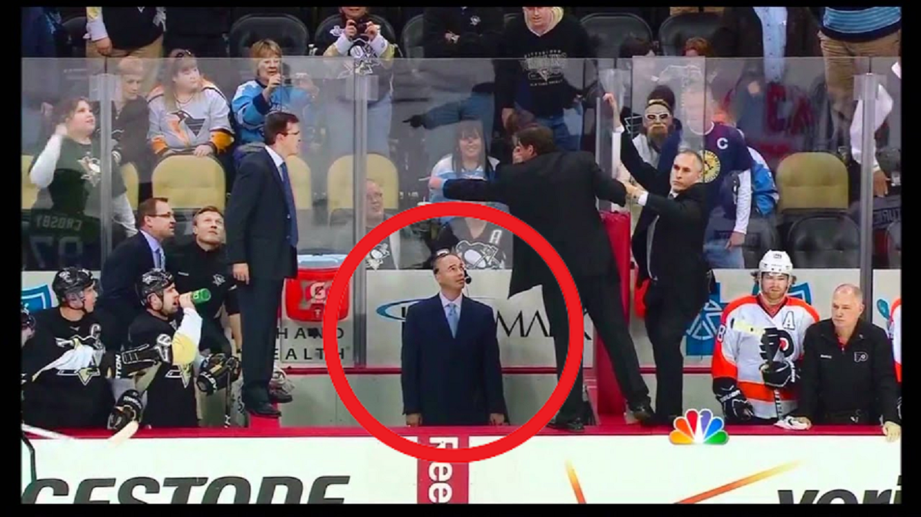 Analitycy i reporterzy, których biurka znajdują się tuż obok hokejowego pola bitwy, nie mają łatwego życia. Bez przerwy muszą uważać na wszelkie obiekty, które przypadkiem znajdą drogę do tego małego, kwadratowego obszaru odseparowującego dwa zespoły. – Nigdy nie możesz tracić koncentracji – przypomina Louie DeBrusk, korespondent Sportsnetu. – Jeśli przez dłuższy czas będziesz patrzył na trybuny, w stronę drużyn lub na swój monitor, może okazać się, że niespodziewanie oberwiesz gumą albo kijem.