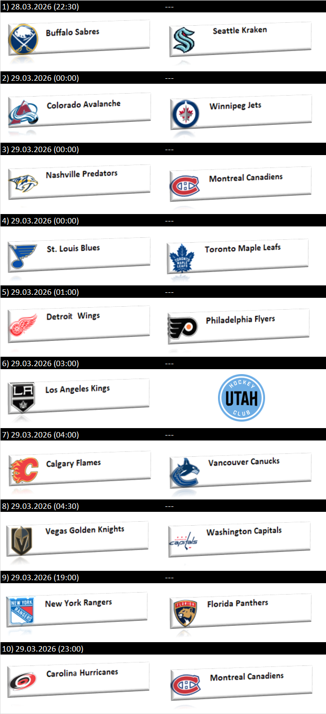 - Buffalo Sabres – Seattle Kraken