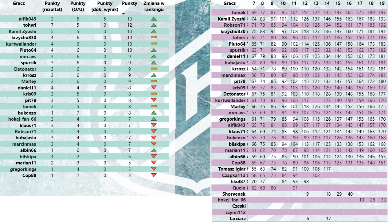 Trafił Jokera w meczu Colorado Avalanche – Minnesota Wild (2:2) zyskując dzięki temu zwycięstwo w 1 kolejce marca – typer Alfik043 z 13-stoma trafieniami wyprzedza o oczko więcej Tohvriego. Dla Alfika043 daje to lekki skok w zestawieniu play-off mogąc walczyć o wejście do najlepszej 16-stki.