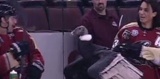 Kondor sterroryzował mecz hokeja. „Ptak był oazą spokoju”. Do czasu
